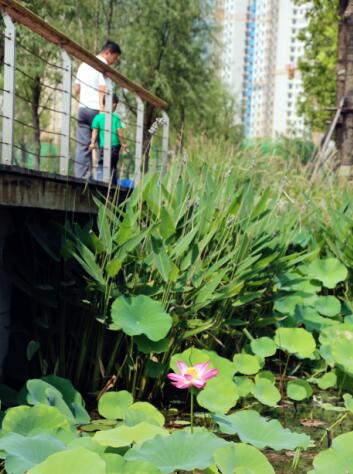 濕地園林一期景觀栽種了100多種植物,有旱柳、國(guó)槐等濟(jì)南本地樹(shù)種,還有荷花、蘆葦?shù)?0多種水生植物,良好的生態(tài)環(huán)境吸引了不少白鷺、??等鳥(niǎo)類棲息,“棹動(dòng)芙蓉落,船移白鷺飛”。