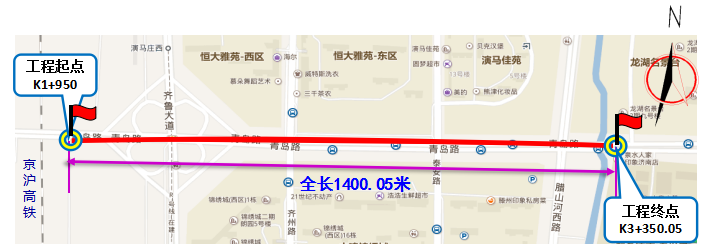 其中,京滬高鐵正線以東至臘山河以西標(biāo)段,全長1400.05米。主要施工內(nèi)容包括標(biāo)段范圍內(nèi)新建高架快速路、地面快速路、地面道路及橋梁、立交工程,敷設(shè)雨污水管線,配套實(shí)施給水、燃?xì)狻㈦娏?、熱力、電信、弱電、中水等管線土建工程,同步進(jìn)行綠化、照明、交通設(shè)施、河道整治、人行過街及海綿城市設(shè)施等建設(shè)。