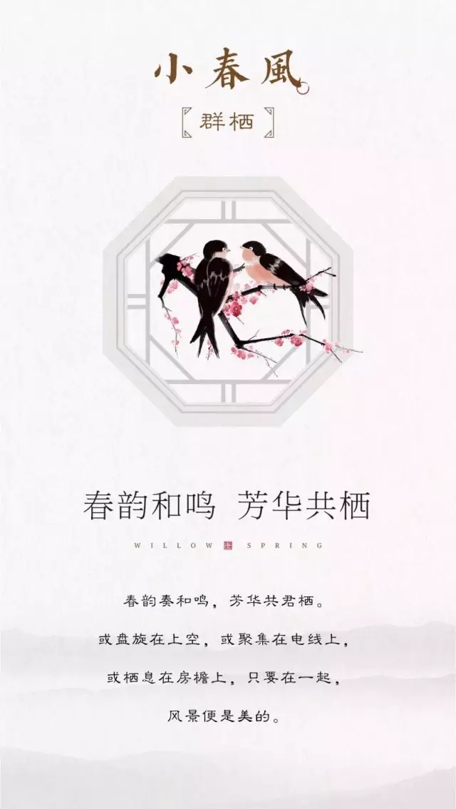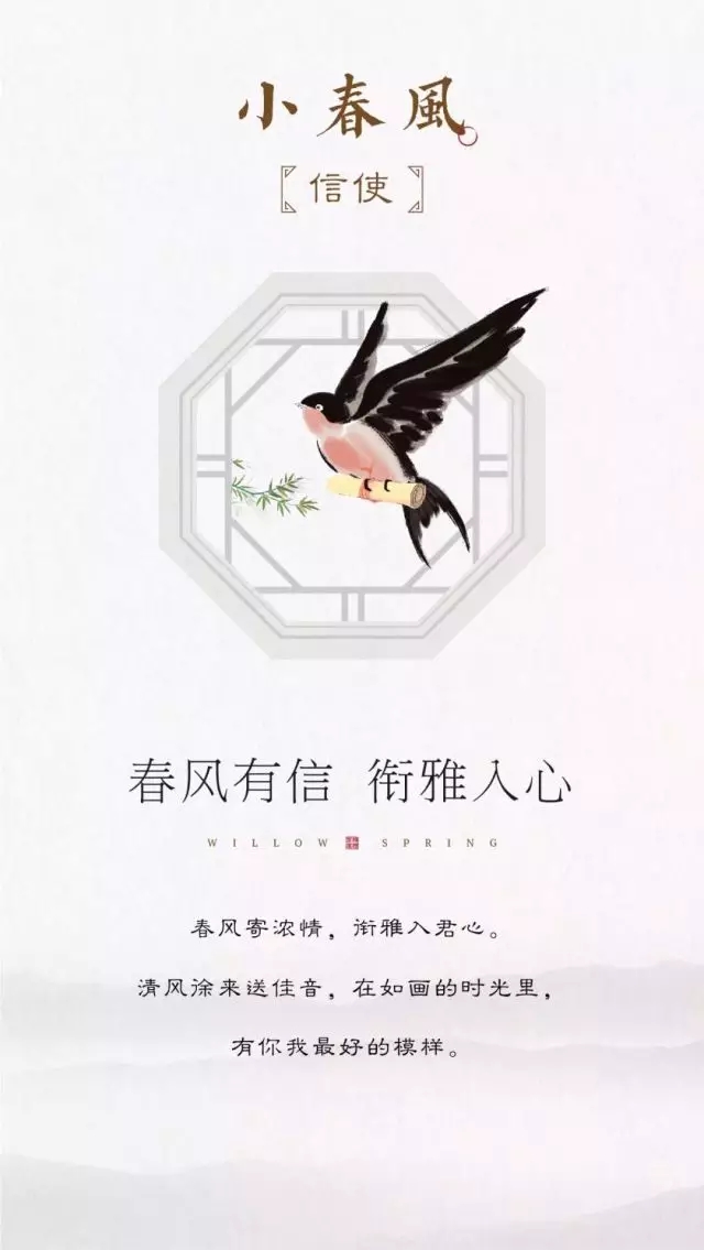 小春風(fēng),以詩意的水墨風(fēng),將象征著生機(jī)、活力、美好與希望的春天收藏在這一座“都市桃花源”之中,寓意著春天的種種美好、春天般的幸福生活能夠常駐于此。
