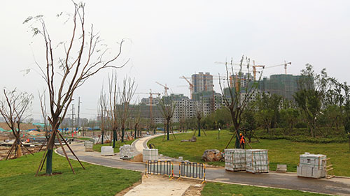 目前,園林一期A區(qū)已經基本建設完畢,進入收尾階段。B區(qū)正在緊張建設中,作為定位人與自然和諧相處的城市濱水區(qū),現(xiàn)場的林蔭廣場、游船碼頭、兒童歡樂天地、親水沙灘、臺地廣場、音樂噴泉等配套服務設施已現(xiàn)雛形,預計6月底主體建設完工。C區(qū)位于華山正南方,處于整個濕地公園的中軸線和橋梁連接部位,定位為歷史文化區(qū),也是整個濕地公園的主入口區(qū),為三個區(qū)域中占地面積最大的區(qū)域,近期也將啟動建設工作。