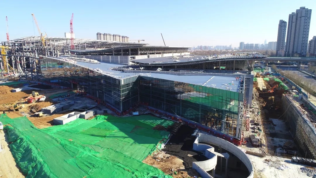 目前,展館區(qū)域已完成5個(gè)展館及4、5號館共享大廳、西輔房區(qū)域主體鋼結(jié)構(gòu)與二次結(jié)構(gòu)施工,正在進(jìn)行裝飾安裝工程。地下車庫已完成除軌道M1線預(yù)埋段區(qū)域主體結(jié)構(gòu)施工,正在進(jìn)行二次結(jié)構(gòu)、裝飾安裝、室外回填及剩余地下車庫主體結(jié)構(gòu)工程施工。