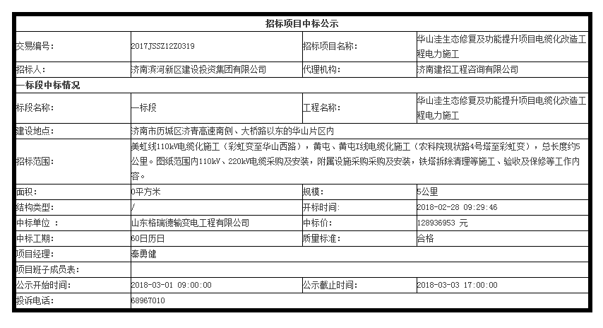 華山洼生態(tài)修復及功能提升項目電纜化改造工程中標公示