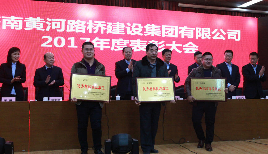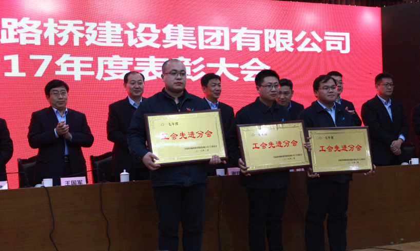 會議結束后,進行了集團公司2017年度表彰大會。對2017年度集團公司先進集體、先進工作者;安全生產工作先進集體、先進個人;工會先進分會和工會積極分子;科技創(chuàng)新工作先進集體、先進個人;優(yōu)秀項目經(jīng)理、項目總工和職工查隱患工作先進個人;集團公司派遣人員貢獻獎;優(yōu)秀配屬單位和優(yōu)秀材料供應單位進行了表彰,先進集體及個人代表分別上臺進行了領獎。