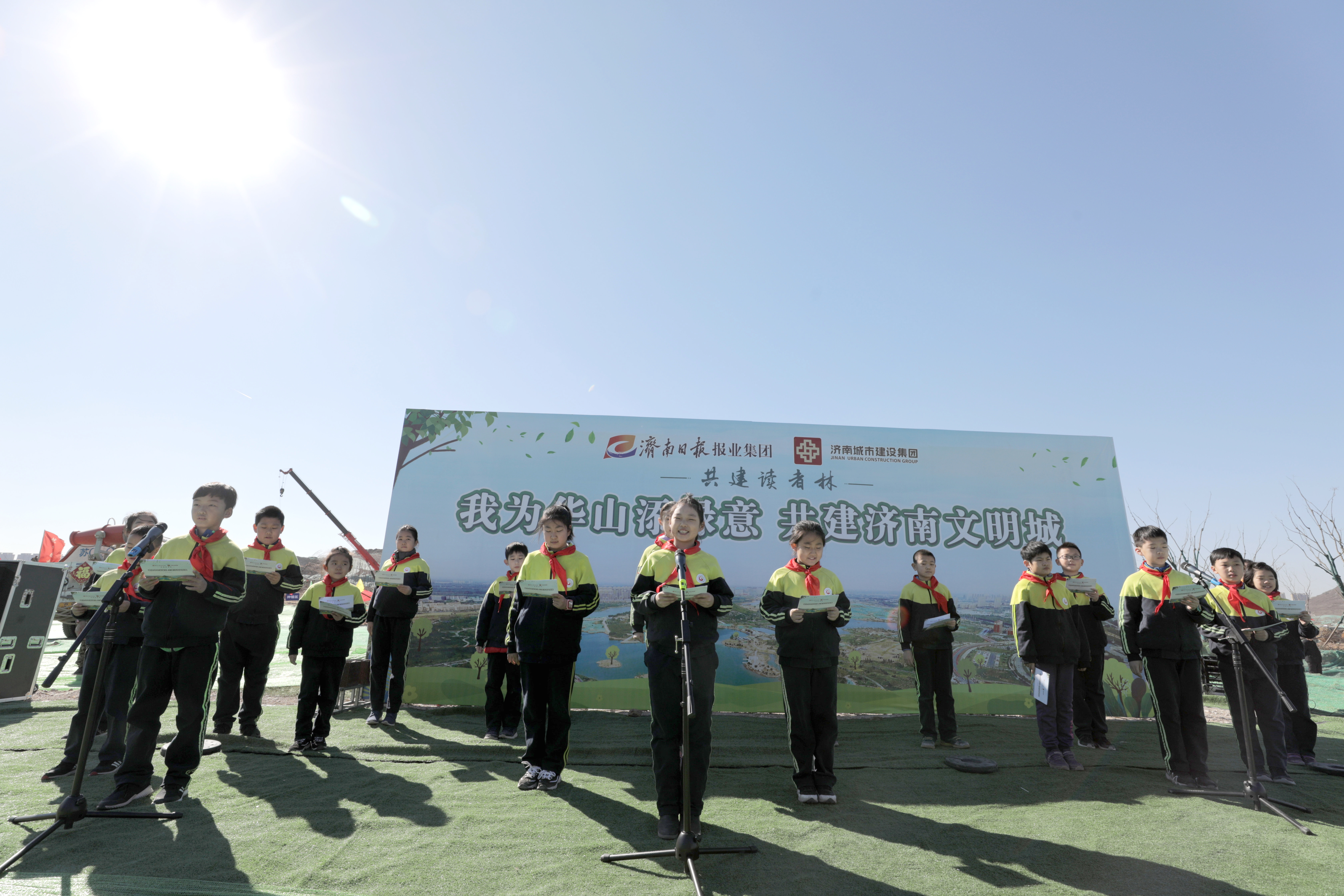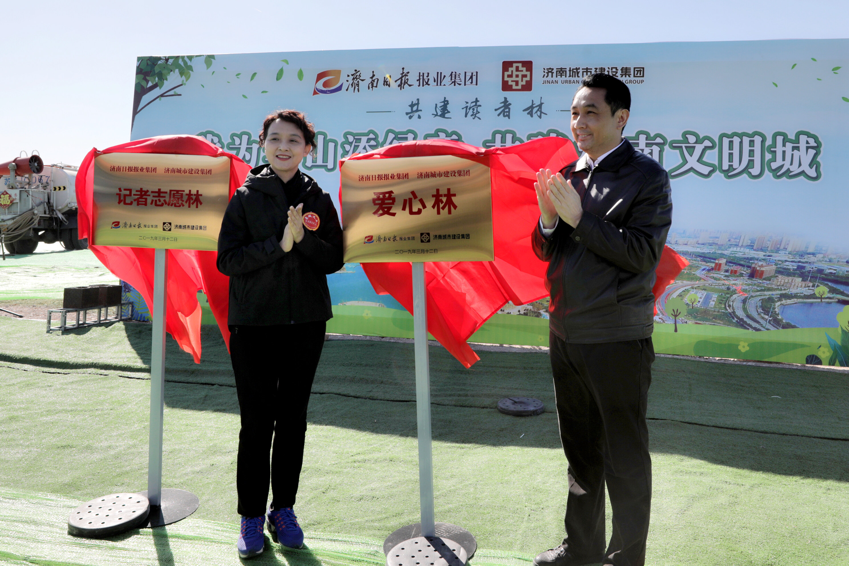 在華山歷史文化濕地公園內(nèi),來自雙方單位的干部職工、泉城義工、小記者代表等共計近500人春種華山,并在華山設(shè)立“記者志愿林”和“愛心林”。濟(jì)南城市建設(shè)集團(tuán)黨委書記、董事長李國祥,濟(jì)南日報報業(yè)集團(tuán)董事長、黨委書記、濟(jì)南日報社社長馬利共同為“記者志愿林”和“愛心林”揭牌。