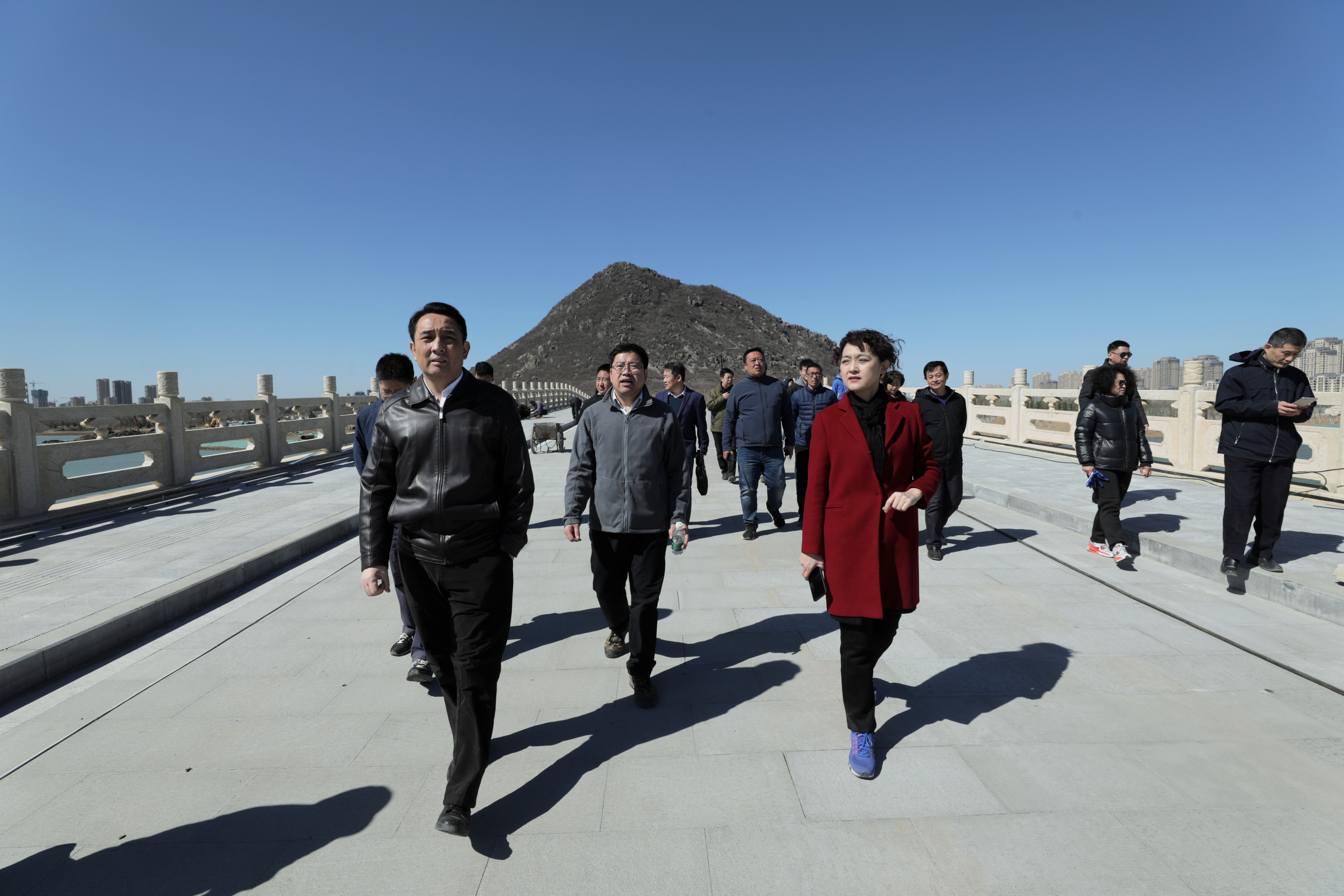 活動結(jié)束后,大家登上煙雨橋,實地察看了橋梁和濕地公園二期建設(shè)情況。