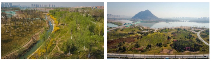 在華山歷史文化濕地公園一期內(nèi),湖邊碧桃、海棠、櫻花等樹(shù)木盛開(kāi),連翹燦爛,色彩斑斕,步移景異,快車(chē)道旁草木叢生,丁香花開(kāi)沁人心脾,蜂蝶相伴,生機(jī)勃勃,吸引眾多市民游客前來(lái)游玩賞花。