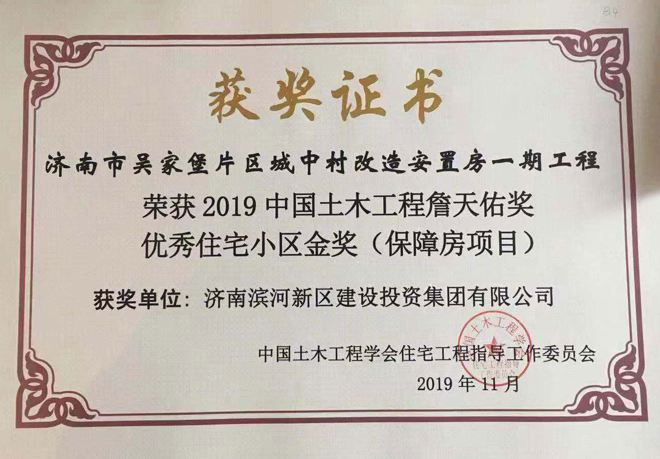弘揚(yáng)工匠精神,打造精品工程。作為濟(jì)南市第一個多村整合的城中村改造項目,近日,由濟(jì)南城市建設(shè)集團(tuán)負(fù)責(zé)建設(shè)的吳家堡片區(qū)城中村改造安置房一期工程(以下簡稱吳家堡安置房一期)榮獲2019中國土木工程詹天佑獎優(yōu)秀住宅小區(qū)金獎。