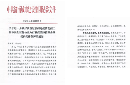 疫情就是命令,防控就是責(zé)任。濟南城市建設(shè)集團把疫情防控作為當(dāng)前最重要的政治任務(wù)來抓,按照中央、省、市委關(guān)于做好新型冠狀病毒肺炎疫情防控的部署和要求,快速響應(yīng),迅速部署,采取有力措施,注重黨委、紀(jì)委兩個責(zé)任的協(xié)同配合,深化一線督導(dǎo)檢查,以最堅決的態(tài)度、最嚴(yán)格的執(zhí)行、最果斷的行動,全力以赴推動疫情防控責(zé)任落實。
