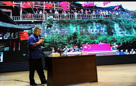 “三溝兩岔山雜晃,紅薯洋芋苞谷粑;要想吃餐大米飯,除非生病有娃娃。”這首過(guò)去十八洞村的順口溜生動(dòng)的反映了之前村子貧窮落后的面貌。報(bào)告會(huì)上,龍秀林通過(guò)工作篇、宣傳篇、情懷篇、鄉(xiāng)村振興篇四個(gè)篇章生動(dòng)的闡述了在十八洞村的脫貧攻堅(jiān)工作。在十八洞工作期間,他大膽創(chuàng)新扶貧模式,提煉“投入有限、民力無(wú)窮、自力更生、建設(shè)家園”的十八洞精神。在項(xiàng)目建設(shè)中,鄉(xiāng)親們犧牲自己的利益支持村里的公益事業(yè)建設(shè);采用“飛地模式”,建設(shè)1000畝獼猴桃基地,去年人均增收1600元;在設(shè)施建設(shè)中,運(yùn)用“把農(nóng)村建設(shè)得更像農(nóng)村”的理念,把十八洞村建設(shè)成了中國(guó)鄉(xiāng)村旅游和紅色旅游最火爆的景點(diǎn)之一。“投入有限,民力無(wú)窮;自力更生,建設(shè)家園”,在脫貧攻堅(jiān)戰(zhàn)中凝聚的十八洞精神,讓十八洞苗寨散發(fā)出無(wú)窮魅力。
