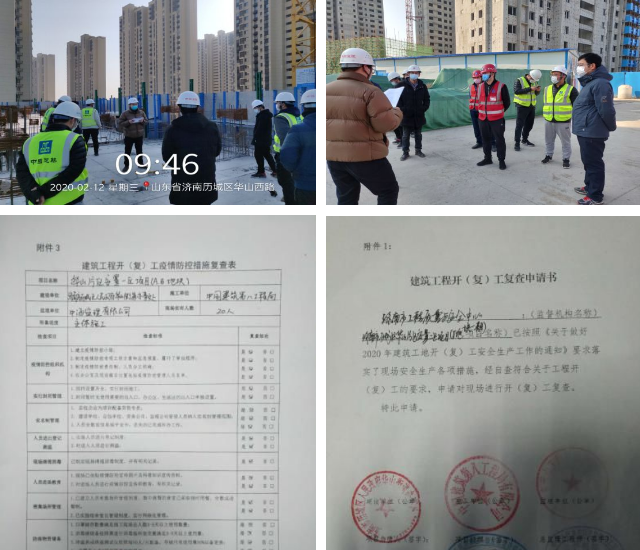 根據(jù)市安委會(huì)辦公室《關(guān)于轉(zhuǎn)發(fā)魯安辦明電[2020]5號(hào)切實(shí)加強(qiáng)復(fù)工復(fù)產(chǎn)安全防范和安全服務(wù)的通知》精神,項(xiàng)目部進(jìn)一步做好疫情精準(zhǔn)防控,升級(jí)防疫管控措施,確保現(xiàn)場(chǎng)有序復(fù)工。