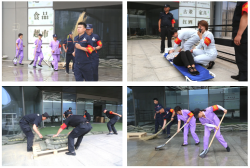 6月9日上午9點,防汛應(yīng)急演練活動正式開始,本次演練模擬暴雨極端天氣背景下,物業(yè)單位發(fā)現(xiàn)汛情后立即啟動防汛應(yīng)急預(yù)案,采取筑沙袋墻、快速處置積水、轉(zhuǎn)移商品至安全處、救護傷員等一系列防汛搶險措施。整個演練過程組織有序、響應(yīng)快速、配合默契,妥善的處置了河水倒灌及水患。