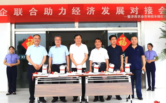 7月18日,由濟(jì)西農(nóng)業(yè)發(fā)起的“政企聯(lián)合助力經(jīng)濟(jì)發(fā)展對接會暨濟(jì)西農(nóng)業(yè)杏鮑菇采銷儀式”在濟(jì)西食用菌項目部啟動。長清區(qū)副區(qū)長劉永亭、省派長清區(qū)鄉(xiāng)村振興服務(wù)隊隊長邱劍峰、建設(shè)集團(tuán)副總經(jīng)理徐文東參加活動。