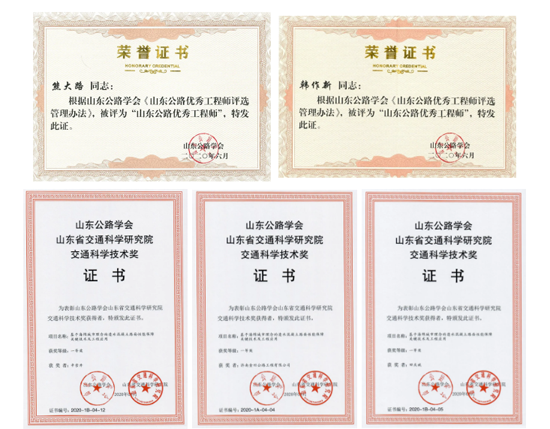 金曰公司總經(jīng)理熊大路、金諾公司總經(jīng)理韓作新榮獲第四屆“山東公路優(yōu)秀工程師”榮譽(yù)稱號。金曰公司《基于海綿城市理念的透水混凝土路面性能保障關(guān)鍵技術(shù)及工程應(yīng)用》科研成果榮獲山東公路學(xué)會山東省交科院交通科學(xué)技術(shù)一等獎,金宇公司《年久鋼質(zhì)護(hù)欄立柱埋深無損檢測精度控制與現(xiàn)場應(yīng)用研究》科研成果榮獲山東公路學(xué)會山東省交科院交通科學(xué)技術(shù)三等獎。