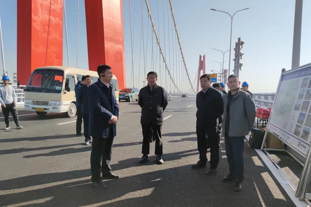 12月4日上午,濟(jì)南市城鄉(xiāng)交通運(yùn)輸局黨組書記曹殿軍一行到濟(jì)南黃河鳳凰大橋調(diào)研項(xiàng)目建設(shè)情況,市交通運(yùn)輸事業(yè)發(fā)展中心主任楊峰陪同調(diào)研。建設(shè)集團(tuán)黨委書記、董事長(zhǎng)張海平,副總經(jīng)理許為民參加活動(dòng)。