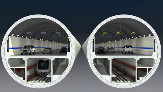 項(xiàng)目提出了雙道防淹門(mén)解決方案,以實(shí)現(xiàn)全方位有效封堵,保護(hù)城市安全。為拓展城市空間,濟(jì)南黃河隧道設(shè)計(jì)為城市市政道路和軌道交通合建方案,實(shí)現(xiàn)隧道空間最大利用率。“萬(wàn)里黃河第一隧”設(shè)計(jì)為雙管雙層公軌合建盾構(gòu)隧道,上層為公路雙向6車(chē)道,下層為軌道交通以及排煙通道、管廊和逃生通道,實(shí)現(xiàn)一次穿越黃河的利用率最大化,極大降低了對(duì)環(huán)境的影響。