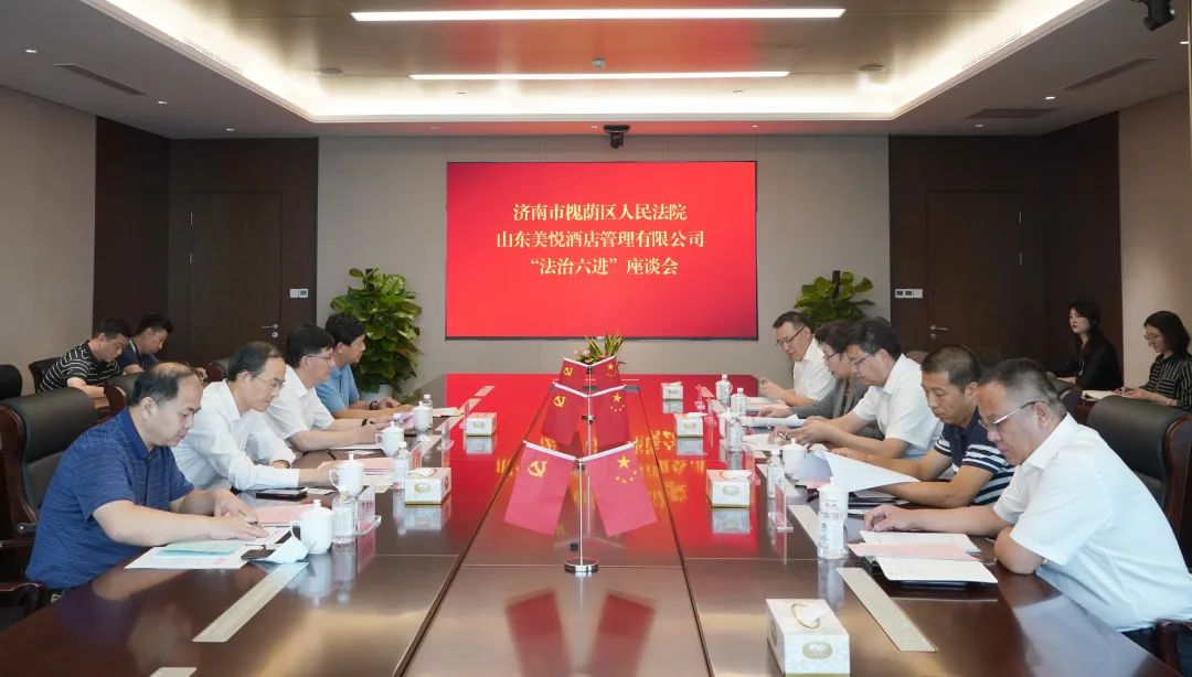 為認(rèn)真貫徹落實(shí)中央和省、市關(guān)于統(tǒng)籌推進(jìn)疫情防控和經(jīng)濟(jì)社會(huì)發(fā)展的部署要求,優(yōu)化法治營商環(huán)境,全力服務(wù)企業(yè)復(fù)工復(fù)產(chǎn),幫助企業(yè)解決困難問題,增強(qiáng)企業(yè)發(fā)展信心,8月26日,濟(jì)南市槐蔭區(qū)委常委、政法委書記熊高翔,槐蔭區(qū)人民法院黨組書記、院長劉文明率“萬警進(jìn)萬企”工作組一行到濟(jì)南城市建設(shè)集團(tuán)召開“法治六進(jìn)”座談會(huì),就山東美悅酒店管理有限公司相關(guān)問題進(jìn)行溝通。集團(tuán)黨委副書記、總經(jīng)理史海成出席座談會(huì)。