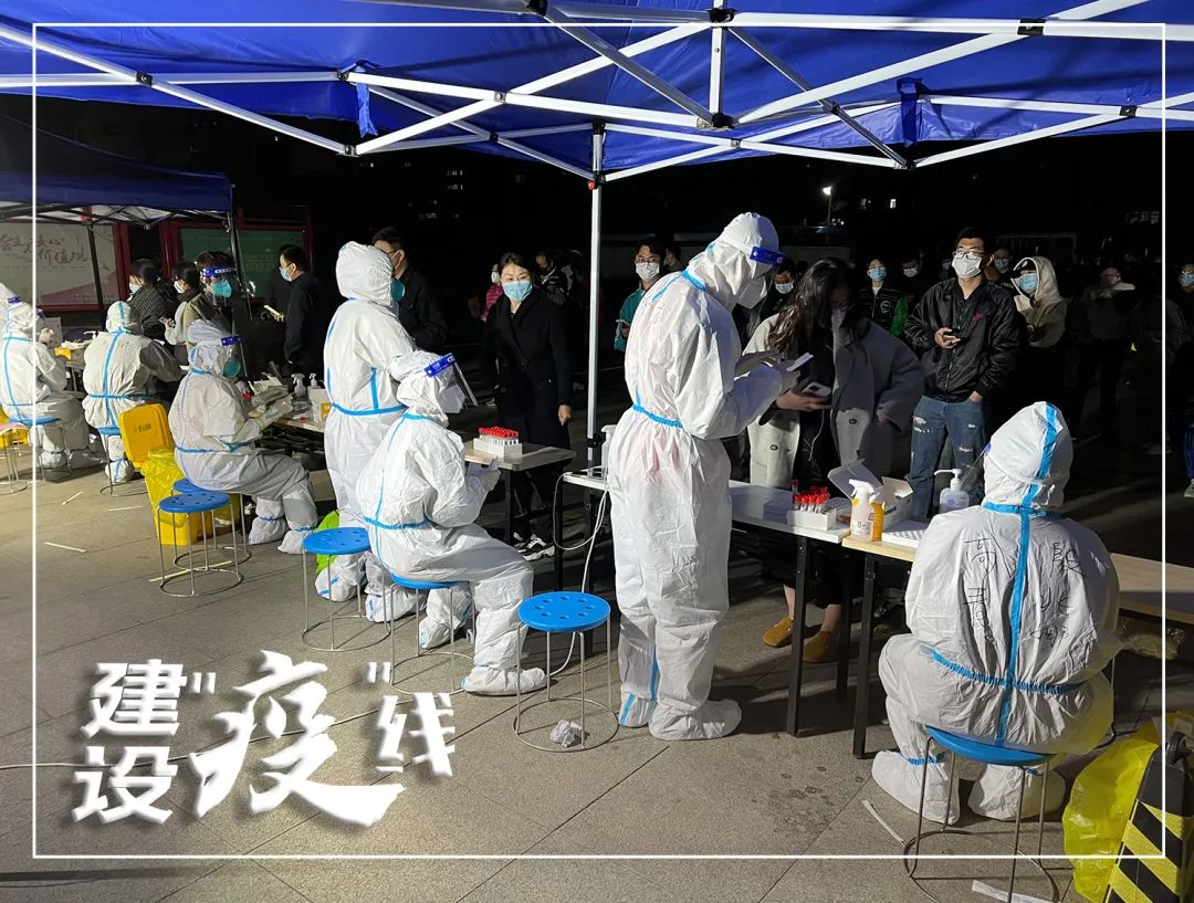 按照工作分工,下沉社區(qū)的工作人員要協(xié)助醫(yī)務(wù)人員開展核酸檢測工作,從檢測場地設(shè)施搭建、隊伍組織、信息登記錄入再到檢測后的證明貼紙發(fā)放都有集團志愿者的身影。以許成龍所在的小區(qū)為例,每天要完成2300余人的核酸檢測輔助工作,等到社區(qū)居民結(jié)束檢測,歸置好檢測樣本,完成場地消殺基本在晚上11:00左右。