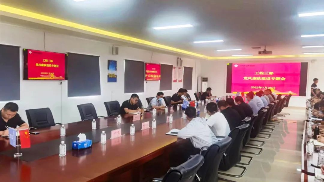 為全面貫徹集團(tuán)黨委關(guān)于加強(qiáng)新時(shí)代廉潔文化建設(shè)的會(huì)議精神,加強(qiáng)支部黨風(fēng)廉政建設(shè)工作,把全面從嚴(yán)治黨要求落到實(shí)處,7月28日,集團(tuán)工程三部黨支部召開(kāi)2022年黨風(fēng)廉政建設(shè)專(zhuān)題會(huì)議。