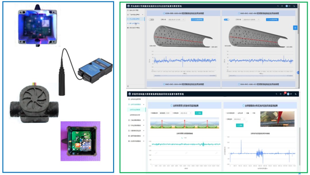 同樣,在濟(jì)南黃河鳳凰大橋也搭建了“橋梁集群結(jié)構(gòu)運(yùn)營安全監(jiān)測(cè)與預(yù)警系統(tǒng)”,利用分布式布里淵光纖傳感技術(shù),建立橋梁集群結(jié)構(gòu)應(yīng)變傳感網(wǎng)絡(luò),利用點(diǎn)式傳感技術(shù),監(jiān)測(cè)橋梁集群結(jié)構(gòu)響應(yīng)與環(huán)境荷載信息。