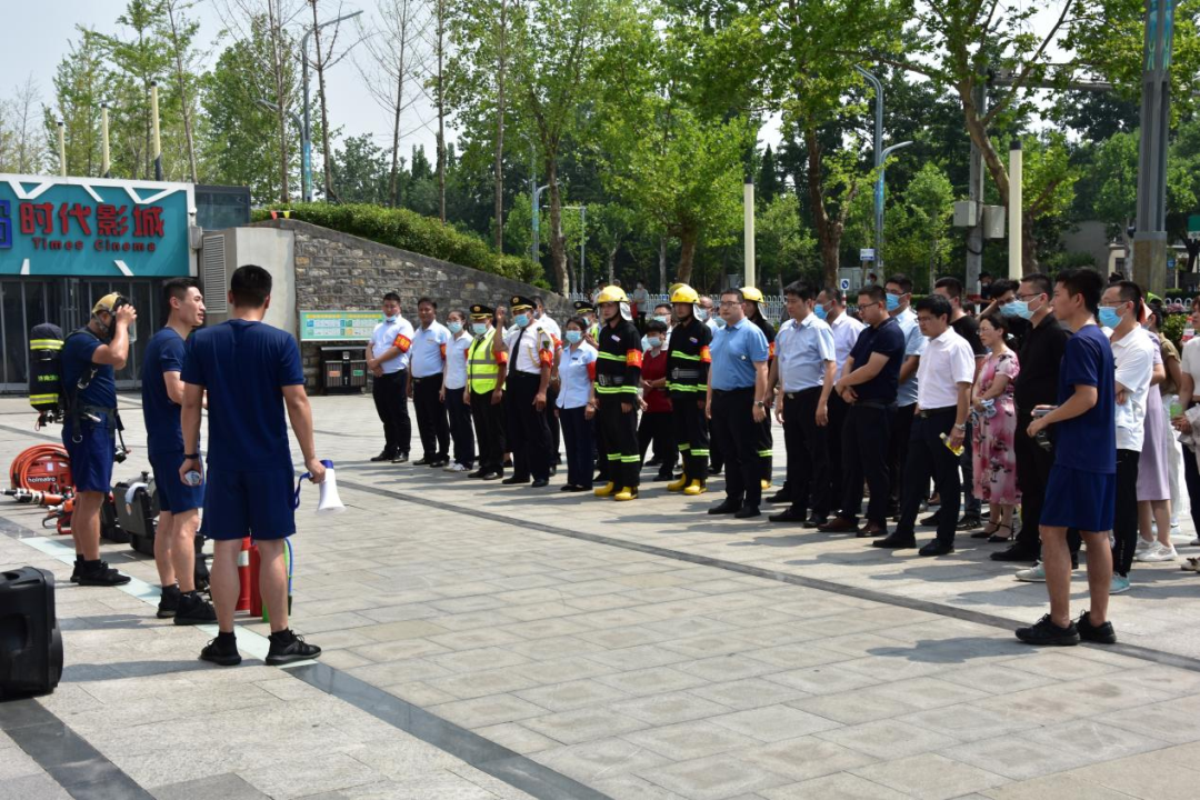 消防演練模擬城發(fā)廣場出現(xiàn)火情,現(xiàn)場迅速啟動應(yīng)急預(yù)案,指揮部組織調(diào)度應(yīng)急搶險組、安全保衛(wèi)組、人員疏散組、醫(yī)療救護組分頭行動,完成現(xiàn)場滅火、人員撤離、物資轉(zhuǎn)移、傷員救治等工作。