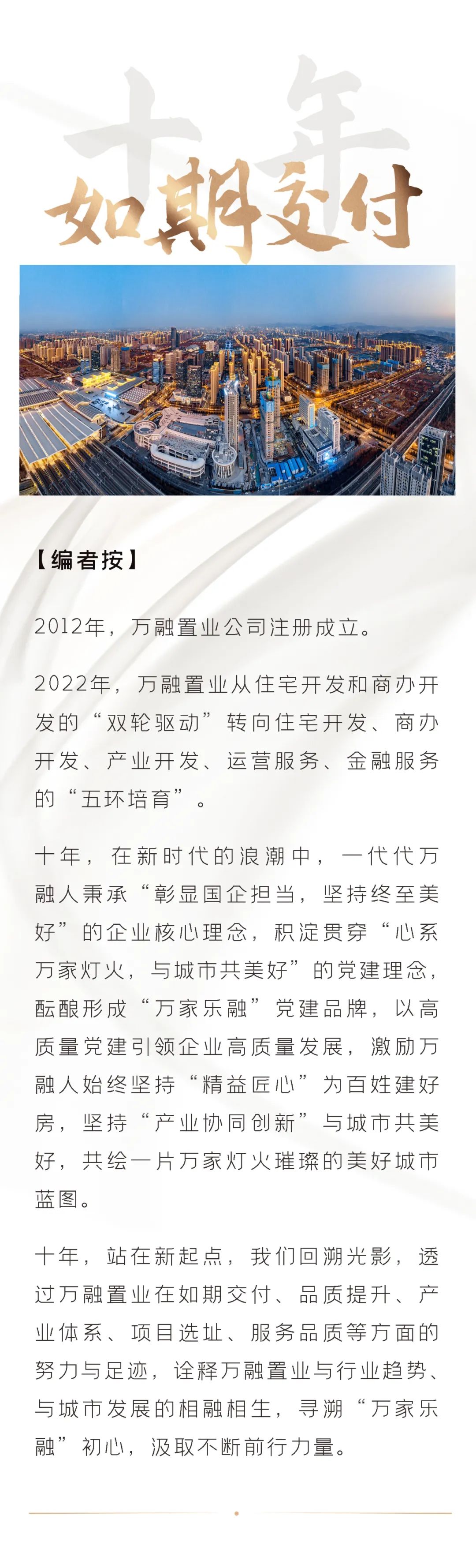 萬融置業(yè)所堅(jiān)持的事情,正如萬融置業(yè)黨總支書記、董事長宋光華所講“始終堅(jiān)持全心全意為人民服務(wù)的根本宗旨,始終牢記‘人民對美好生活的向往,就是我們的奮斗目標(biāo)’;堅(jiān)持‘精益匠心’為百姓建好房,堅(jiān)持‘產(chǎn)業(yè)協(xié)同創(chuàng)新’與城市共美好,共繪一片萬家燈火璀璨的美好城市藍(lán)圖。”