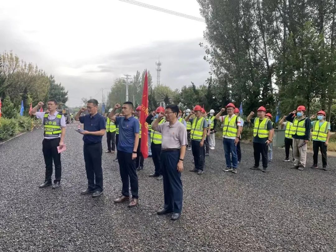 9月14日,由濟(jì)南金諾公路工程監(jiān)理有限公司負(fù)責(zé)監(jiān)理的G205山深線泰安臨沂界至蒙陰段大中修工程,在施工現(xiàn)場舉行了“黨建引領(lǐng)、共建同行”黨員突擊隊成立暨“決戰(zhàn)金秋•大干40天”誓師大會。