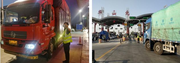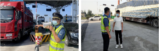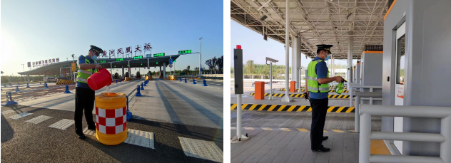 節(jié)前與轄區(qū)防疫部門溝通,節(jié)假日車流量增大,提前增派防疫人員,增加場所碼掃描標(biāo)識,全力保障收費(fèi)站暢通。
