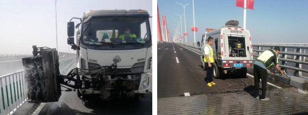 對橋面、防護(hù)欄進(jìn)行深度保潔,為過往司乘提供舒適的出行環(huán)境。