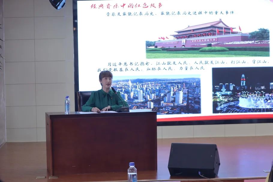 同時(shí),本次學(xué)習(xí)還特別邀請到濟(jì)南市青少年宮團(tuán)隊(duì)帶來音樂黨課《經(jīng)典音樂中的紅色故事》。課程用“理論授課+音樂作品展演”的形式,以時(shí)間軸串聯(lián)講解經(jīng)典音樂著作。黨課分《送別》與震驚中外的五四運(yùn)動(dòng)、《國民革命歌》與轟轟烈烈的大革命、《松花江上》與全民族抗戰(zhàn)的開始、《軍民大生產(chǎn)》與根據(jù)地的艱苦斗爭、《你是燈塔》與新中國的成立、《唱支山歌給黨聽》與社會(huì)主義建設(shè)的蓬勃開展、《春天的故事》與改革開放等七個(gè)部分,一首首耳熟能詳?shù)囊魳纷髌芬元?dú)唱、合唱、二胡獨(dú)奏、大提琴演奏、舞蹈等藝術(shù)形式重新演繹,歷史畫卷伴隨音樂徐徐展開,在浸潤式教育中傳承紅色基因,引導(dǎo)學(xué)員感受藝術(shù)魅力、匯聚精神力量、激發(fā)前行動(dòng)力。
