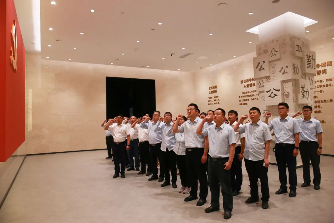 在教育館宣誓廳,面對(duì)鮮紅的黨旗,全體黨員重溫入黨誓詞并莊嚴(yán)宣誓,永遠(yuǎn)牢記共產(chǎn)黨員的初心使命,始終筑牢為共產(chǎn)主義事業(yè)奮斗終生的堅(jiān)定信念。