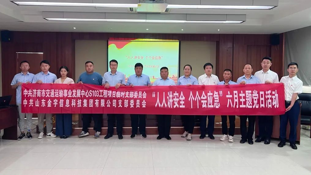 為了讓安全生產(chǎn)意識和理念深入人心,6月25日,山東金宇信息科技集團有限公司黨支部與濟南市交通運輸事業(yè)發(fā)展中心S103工程項目臨時黨支部開展共建,共同舉辦“人人講安全·個個會應(yīng)急”安全知識競賽暨6月主題黨日活動,S103工程項目相關(guān)參建單位黨員、職工代表參加本次活動。