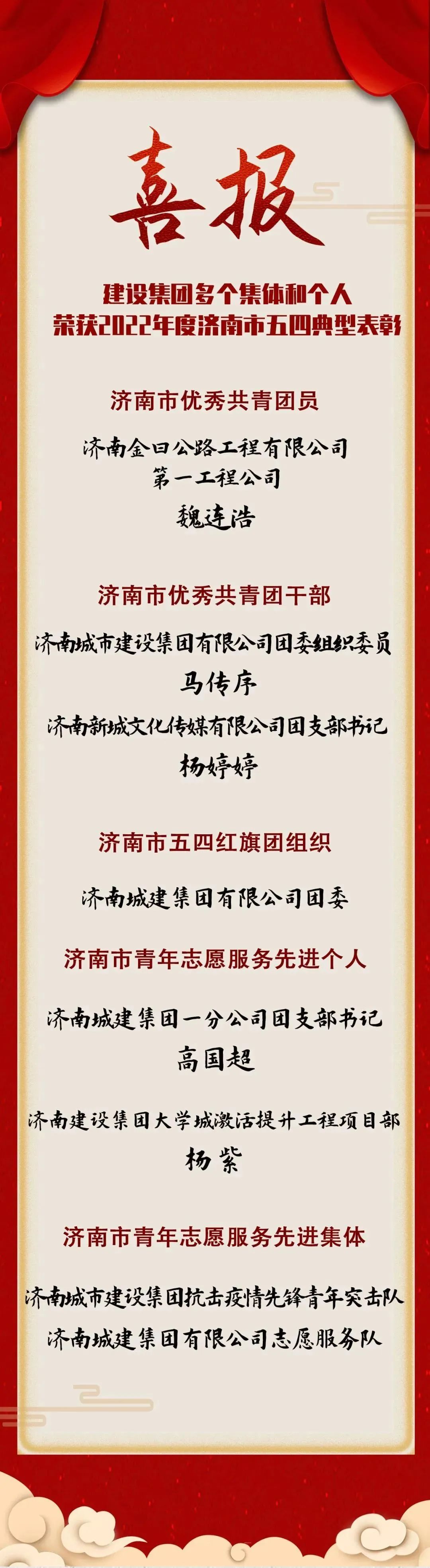 【喜報(bào)】建設(shè)集團(tuán)多個(gè)集體和個(gè)人榮獲2022年度濟(jì)南市五四典型表彰