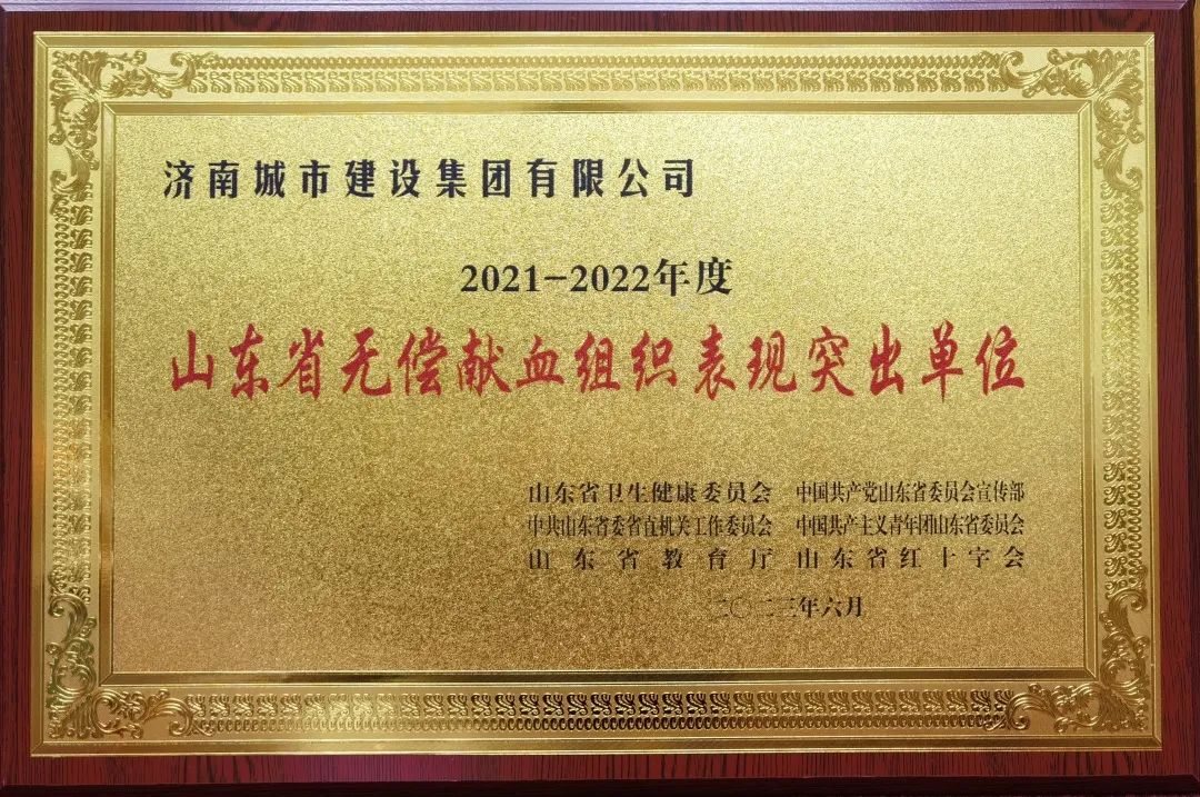 建設(shè)集團(tuán)榮獲“山東省無(wú)償獻(xiàn)血組織表現(xiàn)突出單位”榮譽(yù)稱號(hào)
