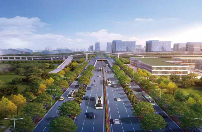 項(xiàng)目是黃河北岸復(fù)合交通走廊,是起步區(qū)內(nèi)部重要的快速通道,作為起步區(qū)的景觀軸、交通軸、經(jīng)濟(jì)軸、功能軸,串聯(lián) 3 大組團(tuán) 5 處重點(diǎn)片區(qū);同時也是銜接多條跨黃通道,溝通起步區(qū)與主城區(qū),加強(qiáng)南北聯(lián)系的重要走廊。黃河大道考慮交通功能優(yōu)先、兼顧綠色出行、生態(tài)景觀等多重需求。