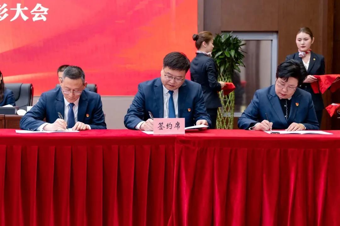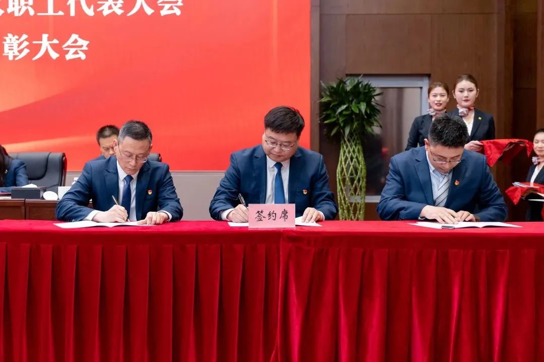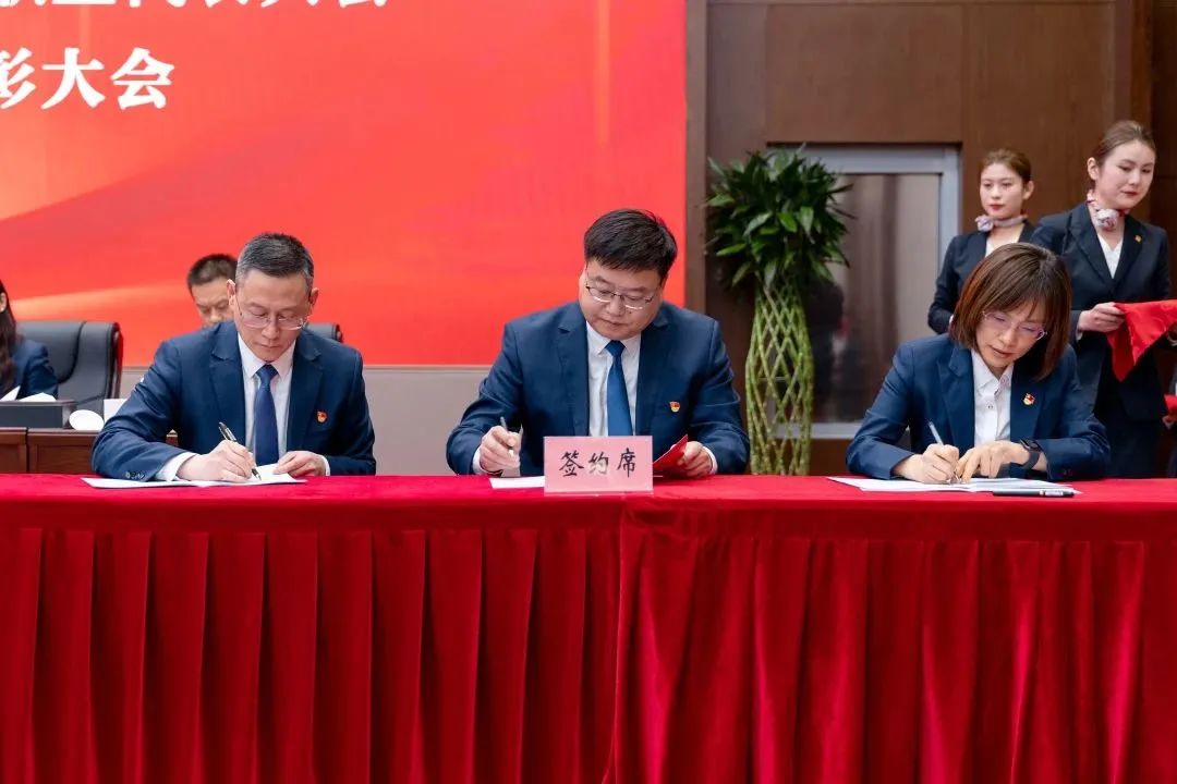 會上集團(tuán)黨委書記、董事長史海成,黨委副書記、總經(jīng)理許為民,與部室、子公司主要負(fù)責(zé)人代表,簽訂2023年度《目標(biāo)責(zé)任書》和《全面從嚴(yán)治黨及黨風(fēng)廉政建設(shè)責(zé)任書》;集團(tuán)副總經(jīng)理安玉坤同志宣讀表彰決定,并對獲獎集體和個人代表進(jìn)行了現(xiàn)場表彰。