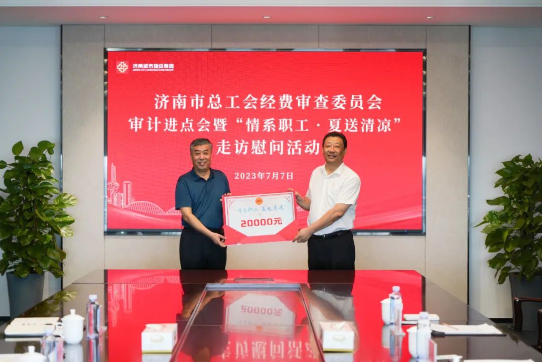 7月7日,市總工會(huì)黨組成員、經(jīng)費(fèi)審查委員會(huì)主任劉明忠?guī)ш?duì)到建設(shè)集團(tuán)開展?jié)鲜锌偣?huì)經(jīng)費(fèi)審查委員會(huì)審計(jì)進(jìn)點(diǎn)會(huì)暨“情系職工·夏送清涼”走訪慰問活動(dòng),市總工會(huì)經(jīng)審辦主任宋強(qiáng),建設(shè)集團(tuán)黨委副書記鐘善良出席活動(dòng)。