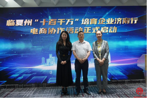 臨夏州商務(wù)局副局長陳建卓、濟(jì)南日報(bào)社副總編輯、舜網(wǎng)總編輯張阿娜,濟(jì)南市商務(wù)局電子商務(wù)處副處長戴晶共同啟動(dòng)活動(dòng)