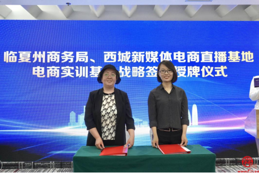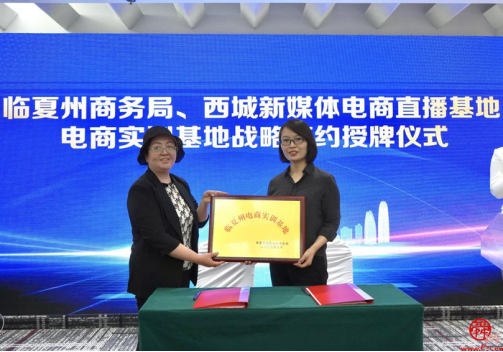 在與會(huì)人員的共同見證下,臨夏州商務(wù)局與西城新媒體電商直播基地、商河商務(wù)服務(wù)中心簽署了電商實(shí)訓(xùn)基地戰(zhàn)略協(xié)議,并為兩家電商實(shí)訓(xùn)基地授牌。