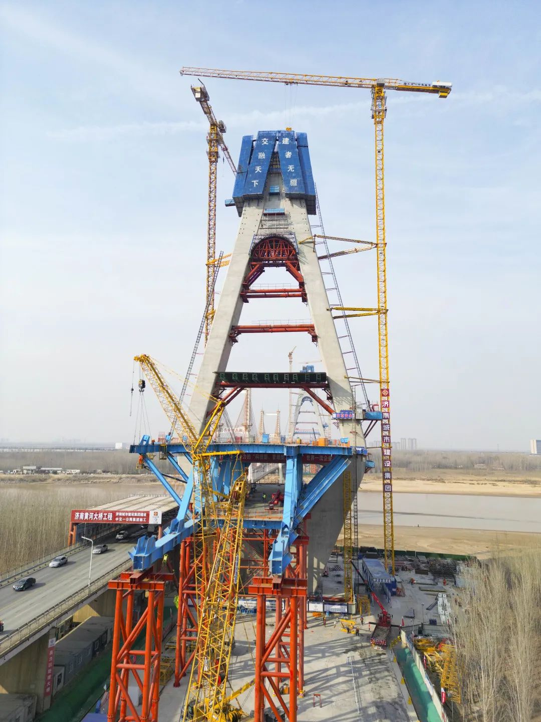 目前,濟(jì)南黃河公路大橋改擴(kuò)建工程主橋部分下部結(jié)構(gòu)施工完成,鋼桁梁架設(shè)61節(jié)間,主塔已施工至上塔柱;零點(diǎn)立交段,濟(jì)南西崗收費(fèi)站及跨將軍路南側(cè)匝道橋已拆除,正在進(jìn)行現(xiàn)澆箱梁及軌道交通土建預(yù)留圍護(hù)樁、高壓旋噴樁施工。