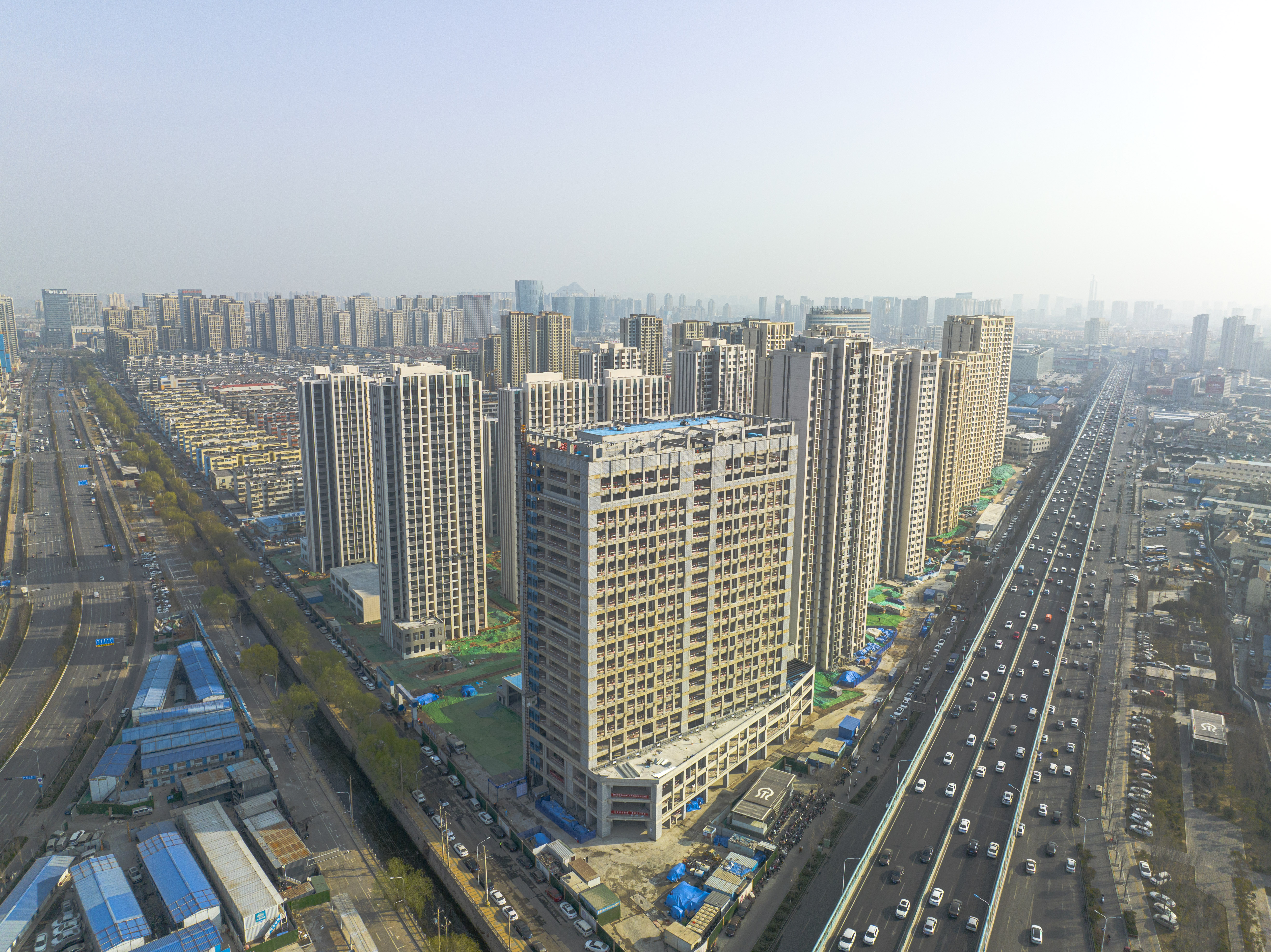 除了安置房項目建設(shè),在臘山河西側(cè)3#、4#地塊租賃公寓建設(shè)現(xiàn)場,主體結(jié)構(gòu)施工全部完成,目前正進(jìn)行二次結(jié)構(gòu)施工,項目建成后將提供5027套租賃公寓;孫耿租賃住房A-1地塊項目新建住宅樓13棟,目前10棟樓已封頂,正在進(jìn)行二次結(jié)構(gòu)施工;租賃住房項目建成后將進(jìn)一步滿足新市民、青年人的住房需求。