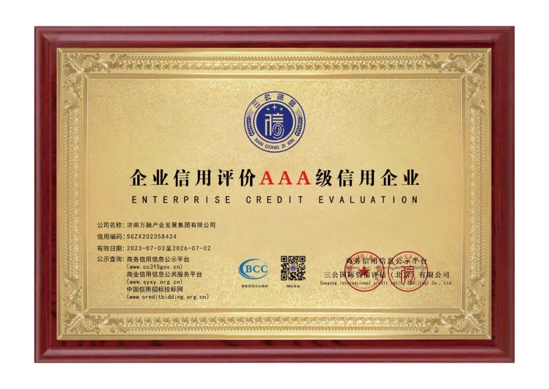 目前,公司擁有企業(yè)資信AAA等級證書、質(zhì)量服務(wù)誠信企業(yè)AAA等級證書、重合同守信用企業(yè)AAA等級證書、誠信經(jīng)營示范企業(yè)AAA等級證書、重質(zhì)量服務(wù)守信用企業(yè)AAA等級證書、重服務(wù)守信用企業(yè)AAA等級證書、企業(yè)信用AAA等級證書、招投標(biāo)領(lǐng)域立信五星企業(yè)、誠信企業(yè)家、誠信經(jīng)理人、企業(yè)信用評價AAA級信用企業(yè)等信用認(rèn)證。
