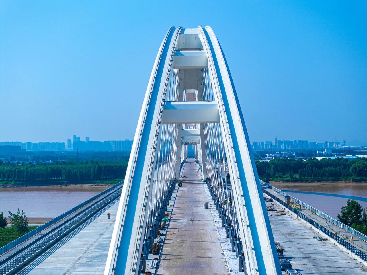 濟(jì)南黃河大橋新橋主線和濟(jì)南黃河齊魯大橋是繼石濟(jì)客專黃河公鐵兩用橋、濟(jì)南黃河鳳凰大橋、濟(jì)南黃河濟(jì)濼路隧道之后通往起步區(qū)的兩條新通途。特別是濟(jì)南黃河大橋新橋,與二環(huán)東高架路南北貫通,一路向飛越過黃河快速直達(dá)正在建設(shè)的濟(jì)南城市副中心——起步區(qū)大橋組團(tuán),不僅大大縮短主城和新城時空距離,更進(jìn)一步拉近黃河兩岸居民的心理距離,是起步區(qū)新城崛起引領(lǐng)黃河時代的交通門戶所在。