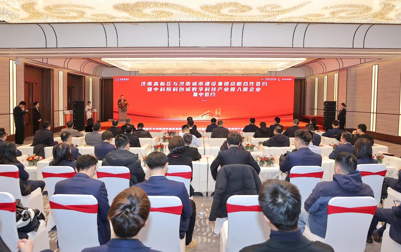 12月25日,濟(jì)南高新區(qū)與濟(jì)南城市建設(shè)集團(tuán)舉行戰(zhàn)略合作簽約暨中科院科創(chuàng)城數(shù)字科技產(chǎn)業(yè)園入園企業(yè)集中簽約活動(dòng)。濟(jì)南市副市長,高新區(qū)黨工委副書記、管委會常務(wù)副主任任廣鋒出席活動(dòng)并見證簽約。市科技局黨組書記、局長黃波,濟(jì)南高新區(qū)管委會副主任、濟(jì)高科創(chuàng)投資集團(tuán)董事長兼總經(jīng)理劉松,濟(jì)南城市建設(shè)集團(tuán)黨委副書記、總經(jīng)理?xiàng)罘?,建設(shè)集團(tuán)副總經(jīng)理徐文東參加活動(dòng)。