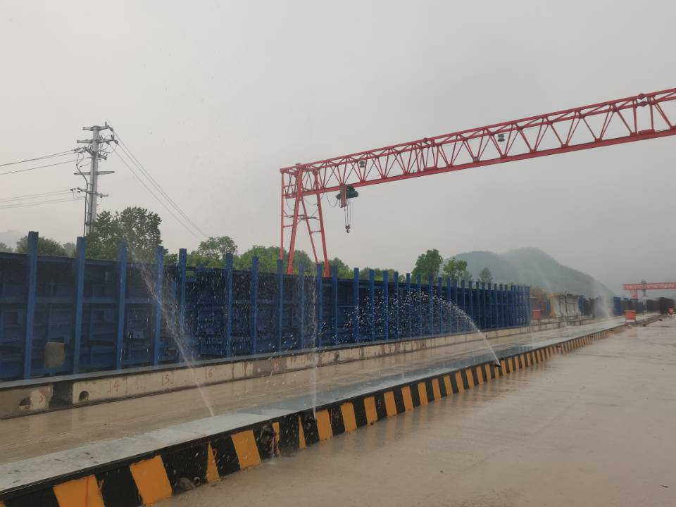 該系統(tǒng)在梁場建設(shè)時提前在臺座中預埋噴淋管道,管道與自動供儲水后臺相連通。當T梁模板拆除后,可通過手機APP控制噴淋系統(tǒng)對T梁的腹板和翼板進行全面均勻噴灑,確保T梁養(yǎng)護無死角,同時通過手機應(yīng)用控制養(yǎng)護操作,隨時隨地一鍵啟動或關(guān)閉,必要時選擇自動化模式,實現(xiàn)T梁24小時不間斷養(yǎng)護。