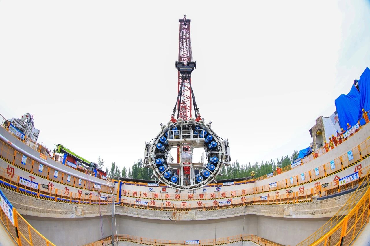 工程所采用的“山河號(hào)”盾構(gòu)機(jī),是世界在建最大直徑泥水平衡盾構(gòu)機(jī),最大開(kāi)挖直徑17.5米,總長(zhǎng)163米、重達(dá)5200噸、裝機(jī)總功率12580千瓦,裝配各類(lèi)刀具306把,其中57把可實(shí)現(xiàn)滾刀齒刀互換,刀盤(pán)開(kāi)口率53%,最大限度滿(mǎn)足掘進(jìn)所面對(duì)的復(fù)雜地層,盾構(gòu)機(jī)總裝達(dá)到世界先進(jìn)水平。