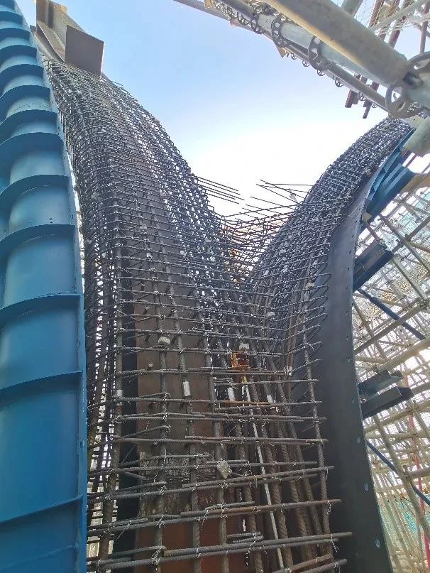 實現(xiàn)深化設計目標后,如何將設計轉換為工程實體,完美實現(xiàn)設計意圖是接下來的重頭戲。項目部組建“樹杈柱”施工攻堅團隊,對鋼模板如何安裝、加固、拆模,鋼筋如何加工、連接、分段、插筋,混凝土如何澆筑等一系列問題進行深入細致的研究,制定了一套科學、可行的施工方案,研究出了一套復雜異形混凝土柱施工工法,提高超復雜異形混凝土柱鋼模板安裝一次合格率,形成多項QC成果,確保開花柱施工質量可控。