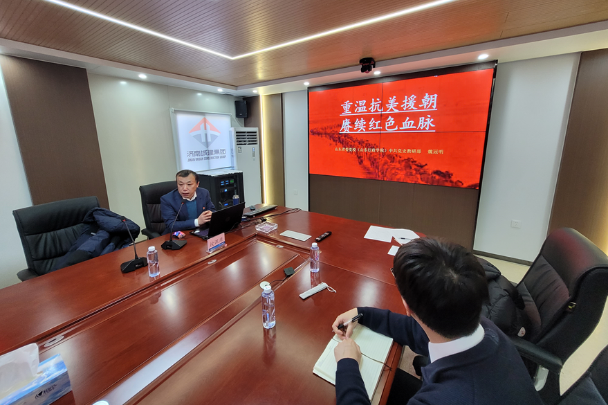 為大力弘揚(yáng)愛國主義光榮傳統(tǒng),銘記革命歷史、傳承紅色精神,1月3日,濟(jì)南城市建設(shè)集團(tuán)融港發(fā)展有限公司黨支部聯(lián)合中建八局二公司黨支部、濟(jì)南城建集團(tuán)建筑分公司黨支部、中鐵十四局機(jī)場項目黨支部在遙墻機(jī)場配套項目建設(shè)指揮部開展“重溫抗美援朝,賡續(xù)紅色血脈”主題黨課活動。