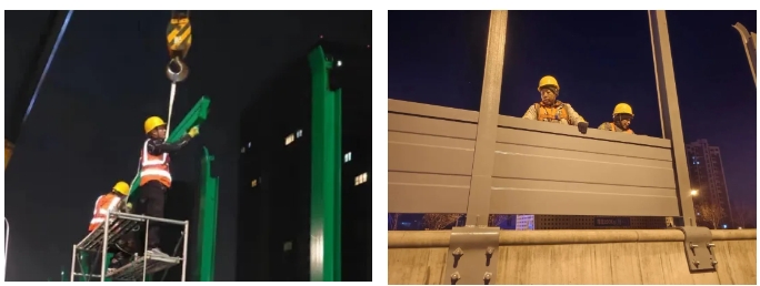 2023年濟南市聲屏障吸音降噪環(huán)保工程由建設(shè)集團所屬山東金宇信息科技集團有限公司承建,工程設(shè)計總長8478.06米,涉及工業(yè)北高架橋、北園高架橋、二環(huán)西高架橋、二環(huán)南高架橋、緯六路高架橋、燕山立交橋、白馬山隧道等路段。施工內(nèi)容包含2.233m、2.5m、2.683m高直弧形聲屏障以及3.5m高直弧形聲屏障、3.5m高頂部帶吸聲筒形聲屏障,部分聲屏障基礎(chǔ)采用騎馬鋼板形式、部分聲屏障基礎(chǔ)采用植入化學(xué)錨栓形式。該項目于2023年8月15日開工,歷時214天,于2024年3月15日竣工。