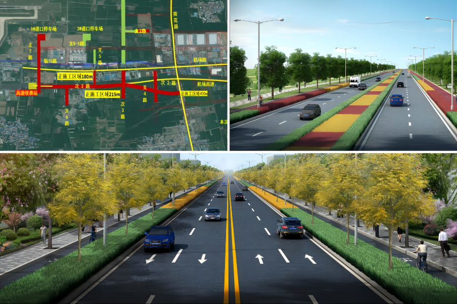 濟南遙墻機場二期改擴建工程城市道路工程是連接遙墻機場與濟南主城區(qū)的重要通道,也是連接臨空片區(qū)和臨港片區(qū)的關(guān)鍵道路群,包含南主進出場路高架及地面道路工程等施工內(nèi)容。本次驗收的濟南遙墻機場二期改擴建工程首批城市道路工程包含次3路、支2路、支5路、支5-1路共4條道路,道路長2.8公里,道路紅線寬30~50米。