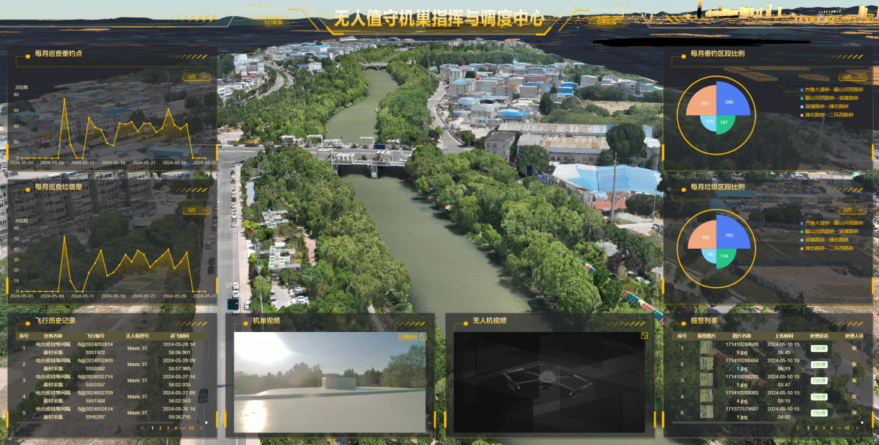 該機巢布置于湖心島,可對華山景區(qū)水面、綠化共計6.25平方公里的區(qū)域進行日常巡檢。該機巢具備無人機定時自動收放、飛行、充電功能,徹底實現(xiàn)無人化值守,支持對無人機及載荷遠程控制。同時,自主巡檢系統(tǒng)通過AI算法,對無人機獲取的低空原始數(shù)據(jù)定位分析,如發(fā)現(xiàn)問題,經(jīng)管理專員核查后,可通過業(yè)務(wù)處理平臺app派發(fā)至運營人員銷項處理。